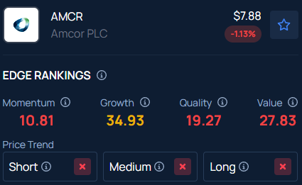 Benzinga Edgeの株式ランキングによると、AMCRは全ての時間枠において価格が下落傾向にある。 この分野における他のプレーヤーの動向を追うことができる。