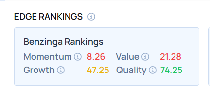 - Edge Stock Ratings: 8.26 モメンタムスコア、バリューは21.28。