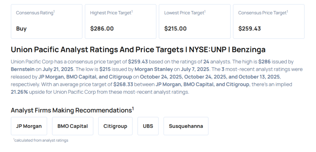 アナリストたちは、収益発表後にUnion Pacificの株価目標に変更を加えた。