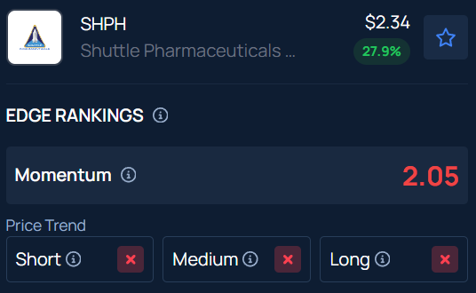 Benzinga Edge株式ランキングによると、SHPH株はすべての期間において価格の下落傾向が見られている。この分野での競合他社のパフォーマンスを比較する。