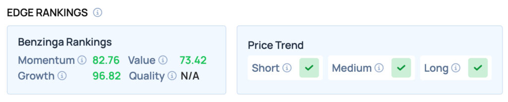 United Airlinesは、モメンタム、バリュー、グロースの各指標で良いスコアを獲得している。短期、中期、長期にわたって好ましい価格動向も示している。このような知見をもっと知りたいなら、今すぐBenzinga Edge株ランキングに登録しよう!