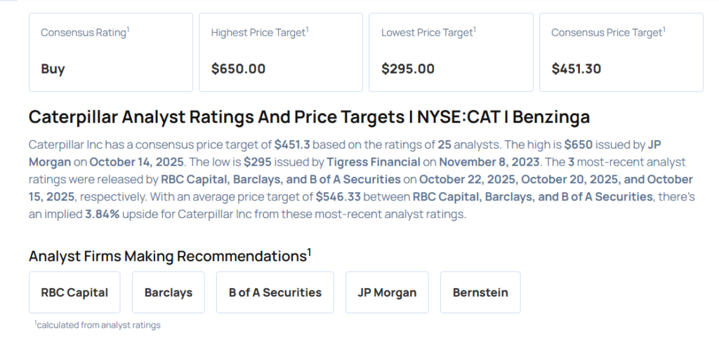 アナリストは、テキサス州アービングに本社を置く同社が、1株あたり4.52ドルの四半期収益を報告すると予想している。これは、前年同期の1株あたり5.17ドルから減少する見込みである。キャタピラーの四半期収益のコンセンサス予想は167.7億ドルで、前年は161.1億ドルだった。これはBenzinga Proのデータによる。