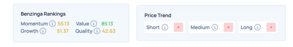 Jefferiesはバリュー面では高い評価を受けているが、BenzingaのEdge Rankingsによると、クオリティ、成長、モメンタム面では低評価である。これは短期、中期、長期の価格トレンドすべてが赤信号を示していることを意味する。