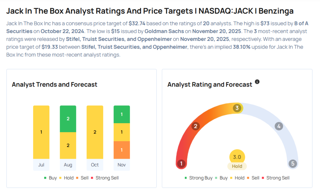 • Truist Securitiesのアナリスト、Jake BartlettはJACKをHoldで評価し、目標株価を19ドルから16ドルに引き下げた。