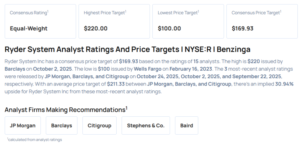 • JPモルガンのアナリスト、ブライアン・オッセンベックはRyder Systemの格付けをNeutralで維持し、目標株価を194ドルから197ドルに引き上げた。
