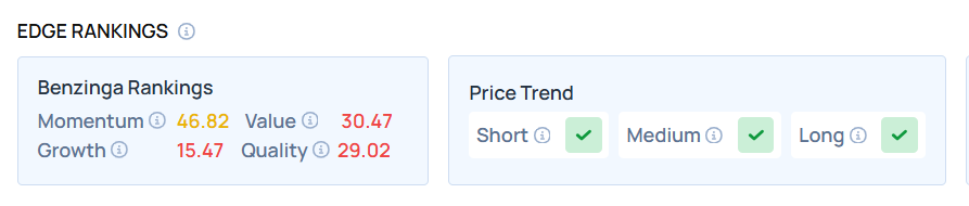 • Edge Stock Ratingsのモメンタムスコアは46.82、バリューは30.47。