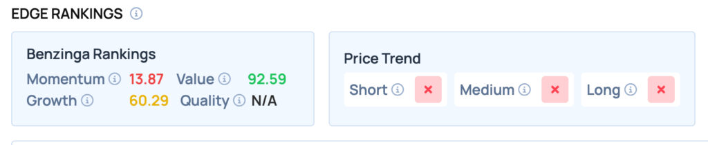 Li Autoはバリュー指標で良好なスコアを獲得しており、成長は満足できる水準であるが、モメンタムは芳しくない。もっと分析が読みたい人は、今すぐBenzinga Edge Stock Rankingsに登録しよう!