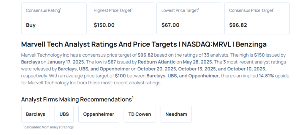 - BarclaysのアナリストThomas O’Malleyは、Marvell Technology, Inc.(NASDAQ:MRVL)のレーティングをOverweightからEqual-Weightに引き下げ、目標株価80ドルを維持した。Marvell Tech株は金曜日に87.95ドルで取引を終えた。他のアナリストがこの株をどう見ているかはこちら。