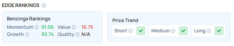 この記事執筆時点で、COINは複数期間にわたる利益と収益の歴史的拡大の組み合わせを示す指標であるGrowthで高評価を獲得した。ウォール街の他の暗号通貨関連株との比較は、Benzinga Edge Stock Rankingsで可能である。