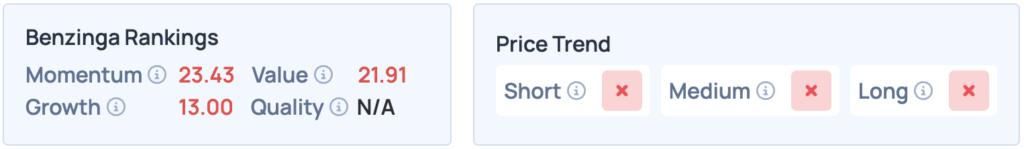 BenzingaのEdgeランキングにおける同社のMomentumスコアは、先週の第3四半期決算の発表により、74.62から29.39へと一週間で急落した。なおこの決算では、同社の利益と売上高がコンセンサス予想を下回っている。