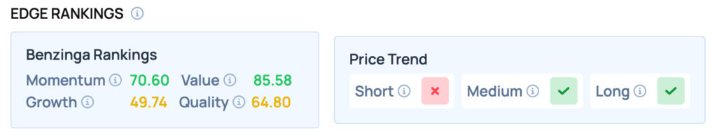 GMはモメンタムとバリューが良く、クオリティとグロースの指標で満足のいくスコアを出している。GMは中長期的に有利な価格動向を示している。こうしたインサイトをもっと知りたい方は、ぜひ今日からBenzinga Edgeの株式ランキングに登録してほしい!