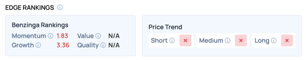 Benzinga Edgeのランキング: Benzinga Edgeのデータは、現在、Beyond Meatに低いモメンタムスコア1.83を割り当てるなど、同社の最近の技術的な弱さを裏付けており、短期・中期・長期にわたるネガティブな価格トレンドを示している。