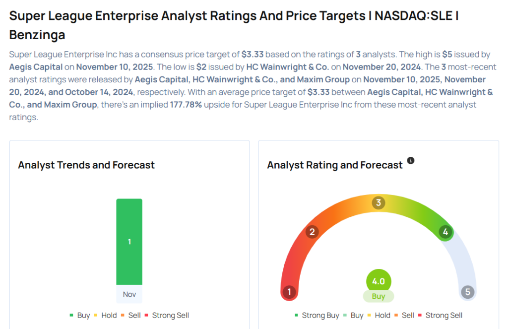 • Aegis CapitalのアナリストRommel Dionisioは、スーパーリーグ・エンタープライズ (NASDAQ:SLE)の格付けをBuyに設定し、目標株価5ドルを発表した。スーパーリーグ・エンタープライズの株価は金曜日に1.18ドルで取引を終えた。他のアナリストがこの銘柄をどう見ているかはこちら。