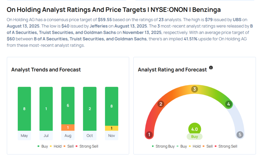 - BofA Securitiesのアナリスト、ティエリー・コタは、On HoldingをBuyで格付けし、目標株価を62ドルから63ドルに引き上げた。