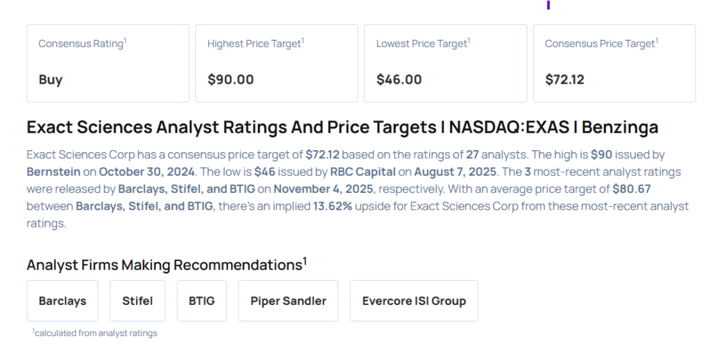 アナリストたちは、今回の決算発表を受けてExact Sciencesの投資判断や目標株価に調整を加えた。