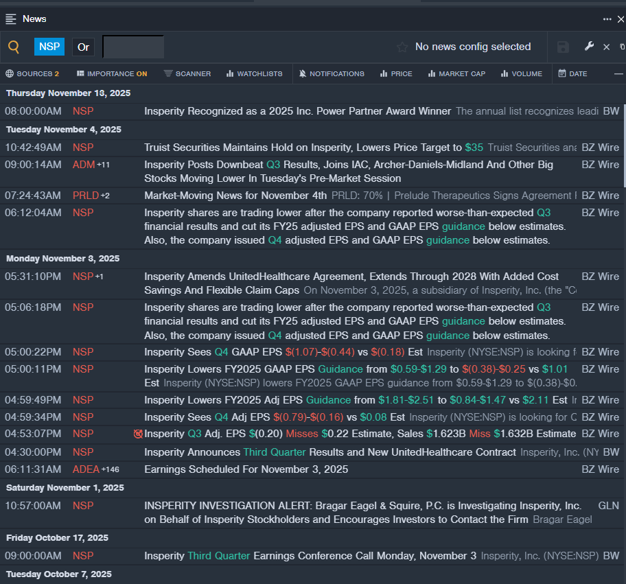 • 最近のニュース:11月3日、Insperityは第3四半期の財務結果が予想を下回ったと報告し、2025年度の調整後EPSとGAAP EPSの予測値をアナリスト予想を下回る水準で引き下げた。