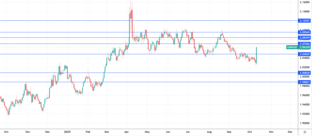 長期にわたる下落の後、GBPは金曜日にAUDに対して急上昇し、長期レジスタンスの2.05250を突破した。